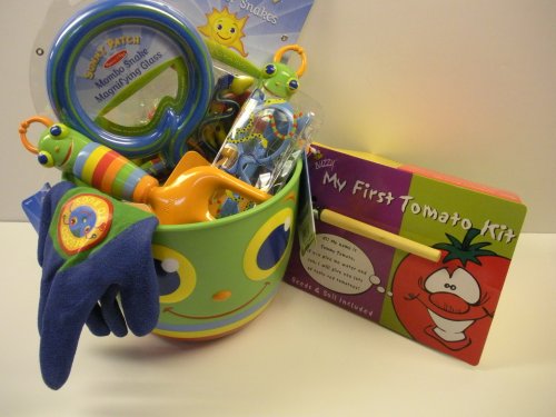 Sunny Patch is an imaginative world filled with whimsical, adorable characters that boys and girls will love. With their Sunny Patch friends to help guide them, children are inspired to learn about and appreciate all living things. This garden set includes: Mombo snake sunglasses, Mombo snake magnifying glass, sack of snakes, Be good to bugs good gripping gloves, Happy Giddy cultivator&trowel, My First Tomato Kit, and it all comes in a Happy Giddy Pail. Welcome to Sunny Patch - happiness grows here! BONUS: Includes My First Tomato Kit